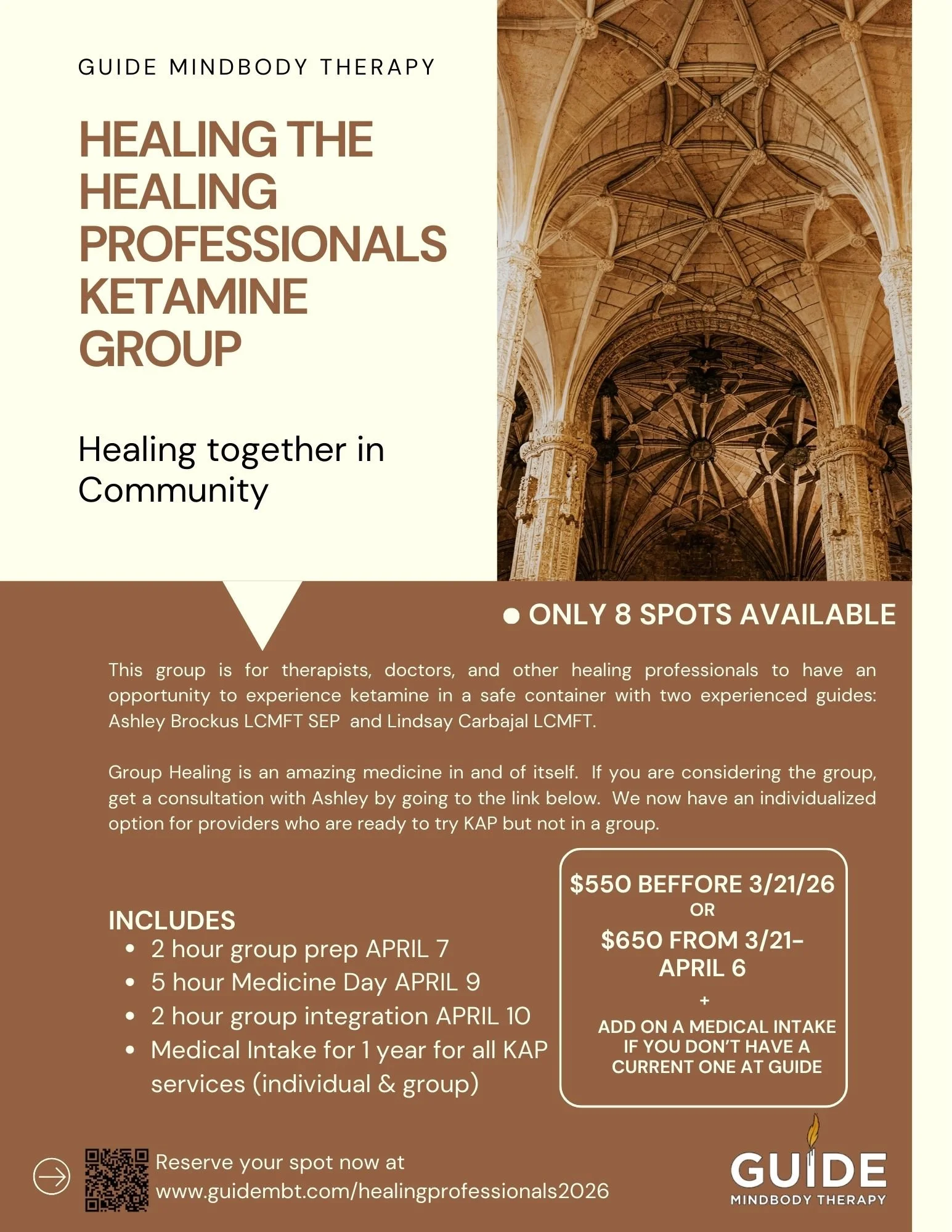 We are excited to offer more Ketamine Experiences for those who work in the healing professions. Our last three groups for healing profesionals were wonderful experiences of healing and growth. We are excited to continue to offer more opportunities.